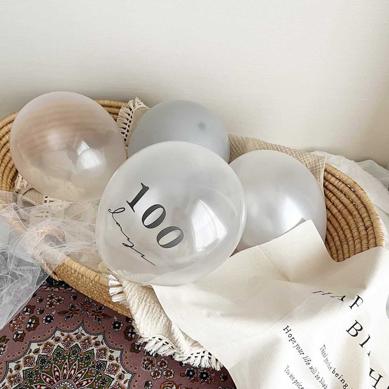 ・100days のバルーンは予備 1個含む、計2個お入れしています。
